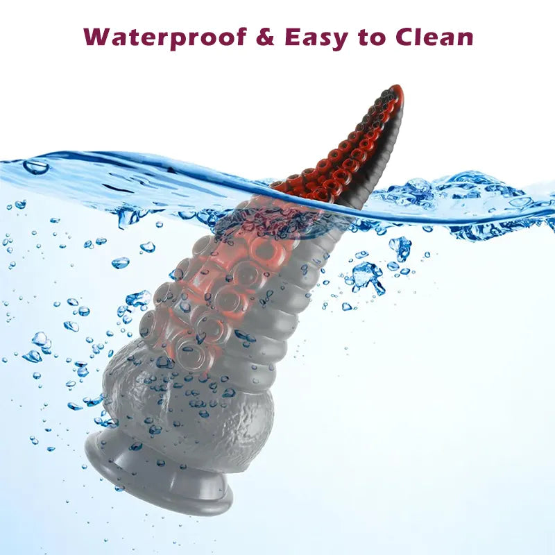 Step into a world of fantasy with this uniquely sculpted dildo, featuring bold curves and lifelike octopus-like textures. Its handcrafted, swirling black-and-grey finish and tentacle protrusions deliver an irresistibly stimulating feel, enhancing every thrust with added grip and sensation.