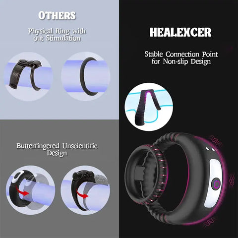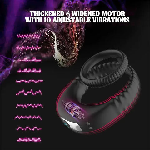 Experience unmatched stability and enhanced pleasure with this 2-in-1 Vibrating Cock Ring, designed to provide a stronger erection while delivering targeted vibrations to the balls, perineum, and clitoris. Its ergonomic, uneven design creates layered pressure, ensuring unrestricted yet intensified pleasure for both partners.