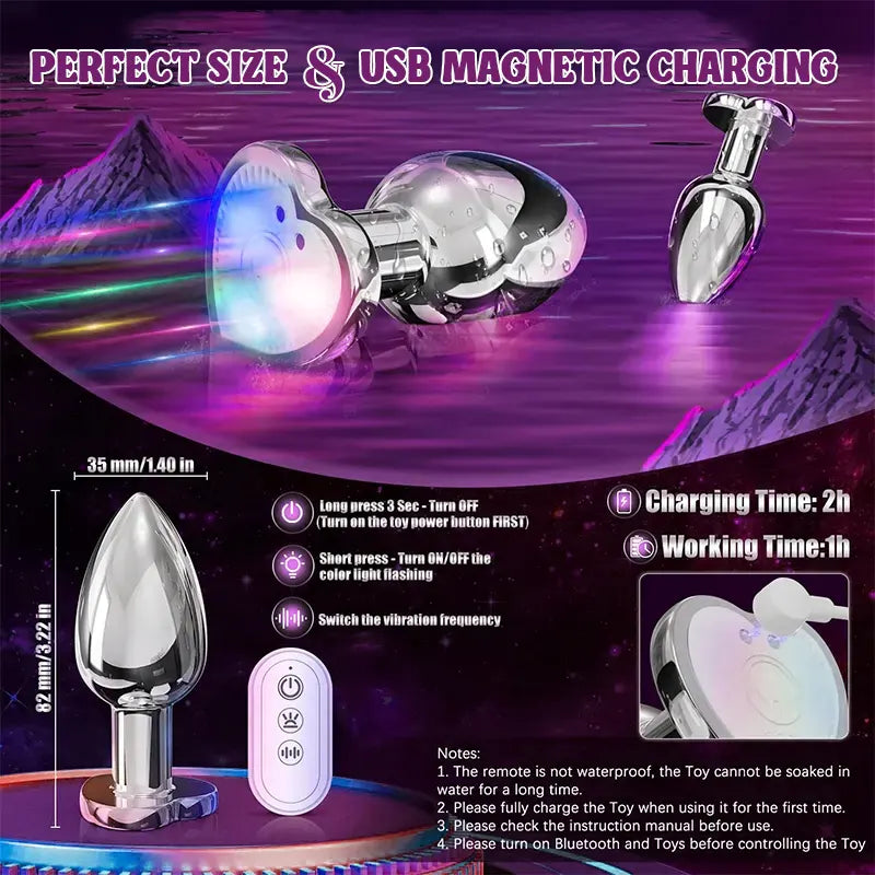 Add a touch of romance and excitement to your playtime with our Heart Colorful Light Up Anal Toy. The base of this vibrant anal plug emits a soft, ever-changing glow, casting a captivating display of colors that shift randomly to create a visually stimulating atmosphere, especially in dim lighting.